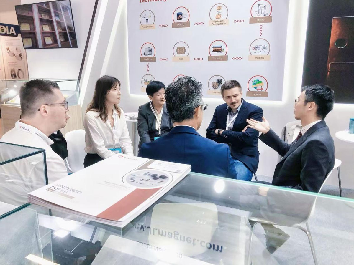 Pasukan Bahan Magnetik Roda Emas Ningbo telah memenangi pujian sebulat suara daripada pelanggan luar negara dengan penyelesaian teknikal yang inovatif, pengeluaran produk yang stabil dan kualiti perkhidmatan yang baik. Dalam perjalanan ke Pameran Gegelung Antarabangsa Berlin ini, Jinlun Magnetic Materials menggunakan sains dan teknologi yang paling sukar, teknologi yang lebih baik dan perkhidmatan yang lebih ikhlas untuk menyokong industri bahan magnet China.
