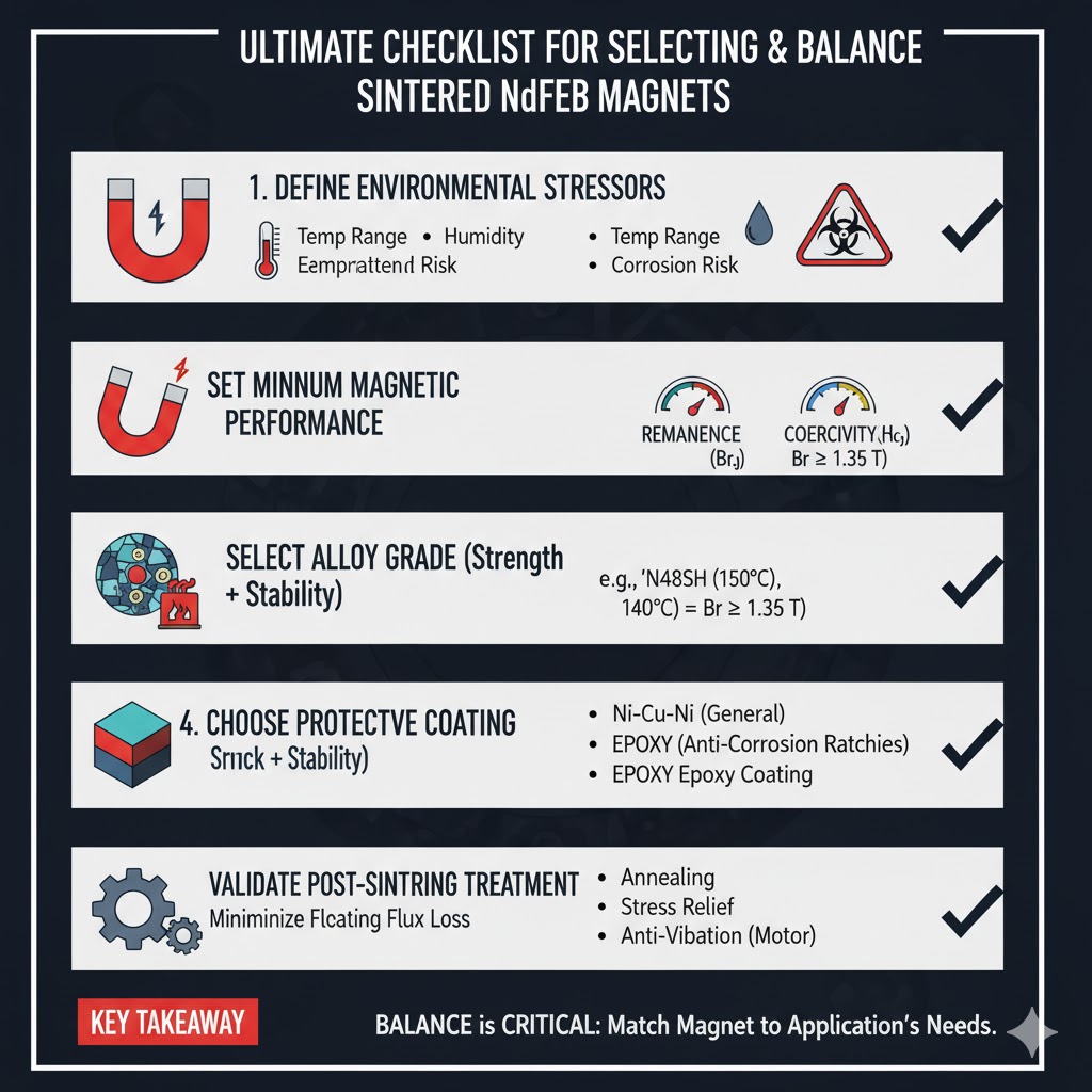 Untuk memastikan magnet mengimbangi prestasi dan kestabilan untuk kegunaan yang dimaksudkan, ikuti senarai semak lima langkah ini:
