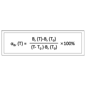 Antaranya, Br(T) dan Br(T0) ialah remanen pada suhu T dan suhu rujukan T0 masing-masing. Biasanya suhu bilik atau 20°C dipilih sebagai T0, dan nilai suhu tinggi T perlu ditentukan oleh kedua-dua pembekal dan peminta mengikut persekitaran penggunaan. Jika αBr positif, ia bermakna remanens meningkat apabila suhu meningkat; jika negatif, bermakna remanens berkurangan apabila suhu meningkat.