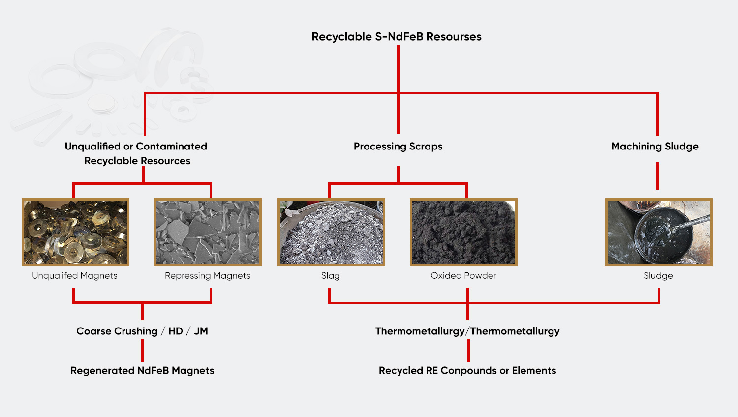 | Kitar Semula Lumpur Magnetik Lumpur magnet yang dihasilkan oleh proses pengisaran bahan magnet digunakan untuk mengekstrak unsur nadir bumi melalui proses khas, dan serbuk besi yang tinggal boleh digunakan sebagai bahan mentah metalurgi, mencapai kadar penggunaan sumber sisa melebihi 90%. | Rawatan Cecair Pemotong Sisa Teknologi gabungan pengoksidaan termaju pengasingan membran ultrafiltrasi digunakan untuk memisahkan minyak dan air dalam cecair pemotongan sisa. Kualiti air terawat memenuhi standard pelepasan tahap pertama GB 8978-1996, dan fasa minyak boleh ditapis dan digunakan semula. | Sistem Kitar Semula Acuan Sisa Wujudkan sistem pengurusan kitaran hayat penuh acuan untuk melakukan pembaikan pelapisan laser atau penjanaan semula metalurgi serbuk pada acuan karbida yang dibuang, meningkatkan kadar kitar semula bahan acuan kepada lebih daripada 60%. |