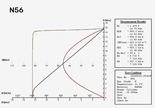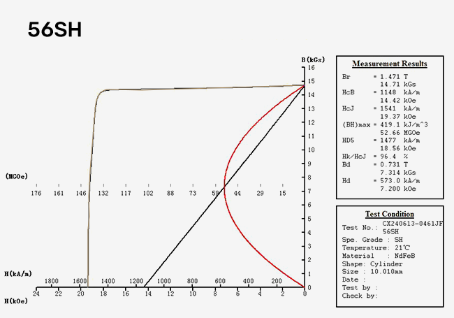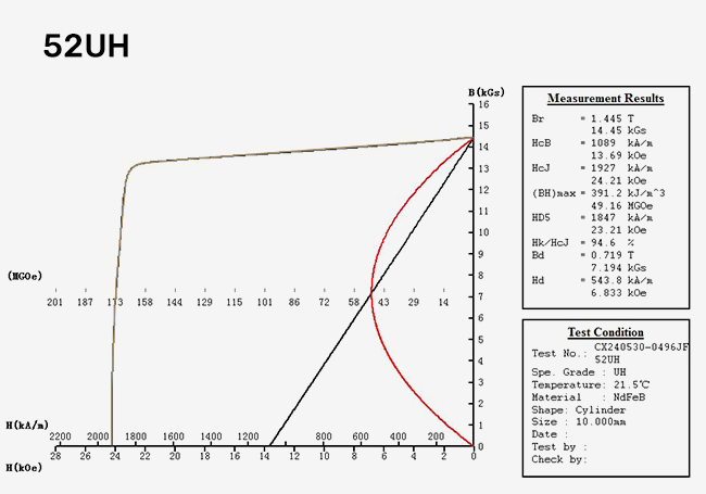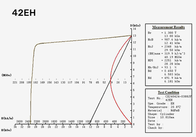 | Temp.Coeff. daripada Br (pekali suhu boleh balik) | -0.09~-0.11% ℃ | Temp. Coeff. daripada Dia | -0.50~-0.60% ℃ |